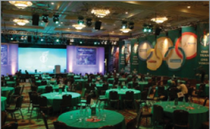 The same as the previous example but used for a different event. This clearly illustrates how the use of different lighting and lecterns can change the look of a stock set.