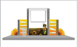 A further example of how a single screen set with staggered flats and branding is used to gain maximum impact.