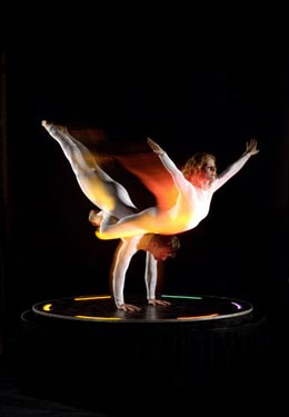 A unique and dazzling spectacle of choreographed colour where highly technical juggling is combined with movement and state of the art, electronically illuminated balls and clubs. Performed in perfect synchronization to a dramatic soundtrack.