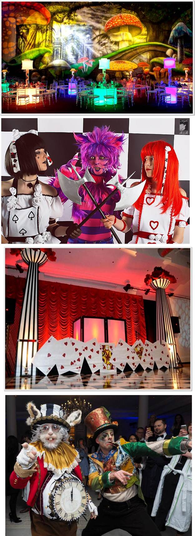 The room will be decorated to take on a fantastical and abstract feel with oversized tulips, sunflowers, candy canes and crazy mirrors used to create a Wonderland experience. Star cloth with twinkling lights will add to the atmosphere and set the backdrop for an evening of fun and frolics!