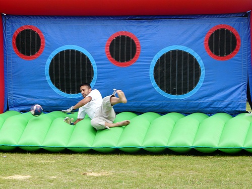 Which team can score the highest in this football shooting skills game? With targets to shoot at, the combined team score will be used to find the winning team.