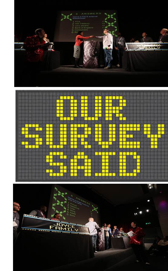 This event contains all the pizzazz of the classic TV game show. Our glitzy host sets two teams (or families) against each other as they answer questions relating to a series of surveys carried out on one hundred people.