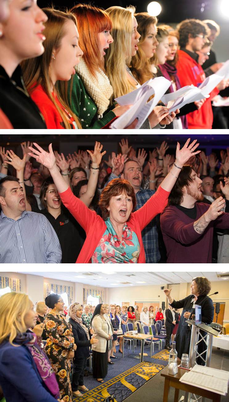 Our facilitators will take you through a brief vocal warm up before splitting you into three smaller sections. Our coaches will then work with the group learning the song (you pick from a list in advance) - which will be ultimately performed as an ensemble, creating a rousing finale to the event.